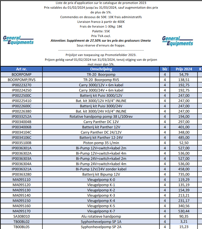 Prijslijst